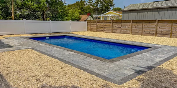 Discover how a Swimming Pool Express Fiberglass Pool can turn your backyard into a dream oasis. Click the button to schedule a virtual call with one of our experienced design consultants.